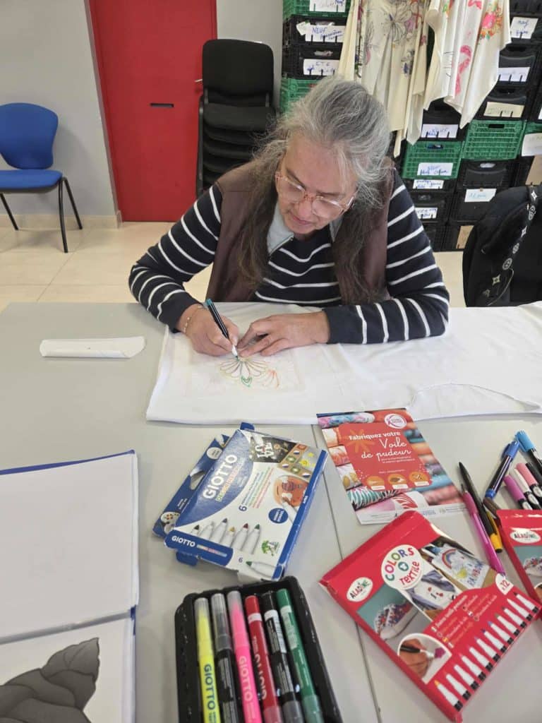 Atelier réalisation d’un voile de pudeur au Secours populaire Noeux