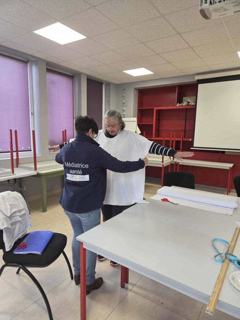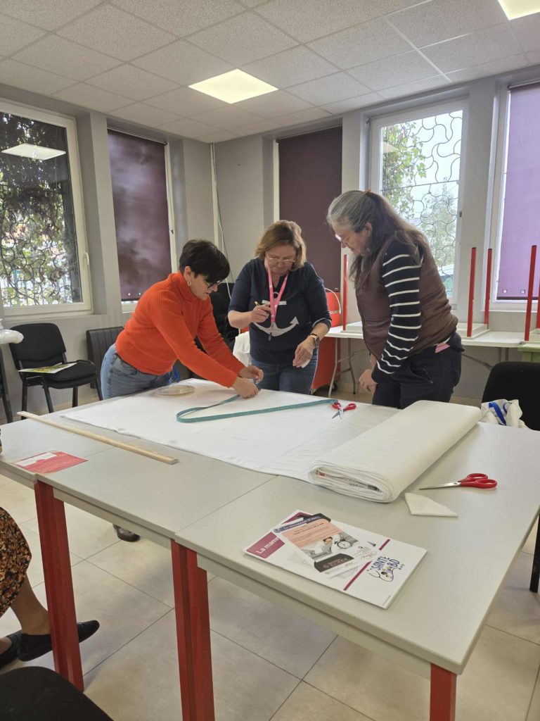 A l’occasion d’Octobre rose, cet atelier encadré par des médiatrices santé de l’Agglomération CABBALR a permis à 3 femmes de confectionner leur voile de pudeur afin de les encourager à réaliser leur mammographie.