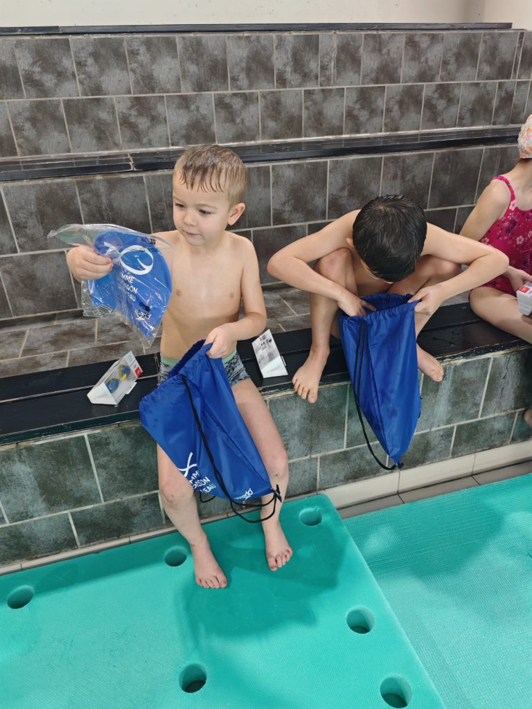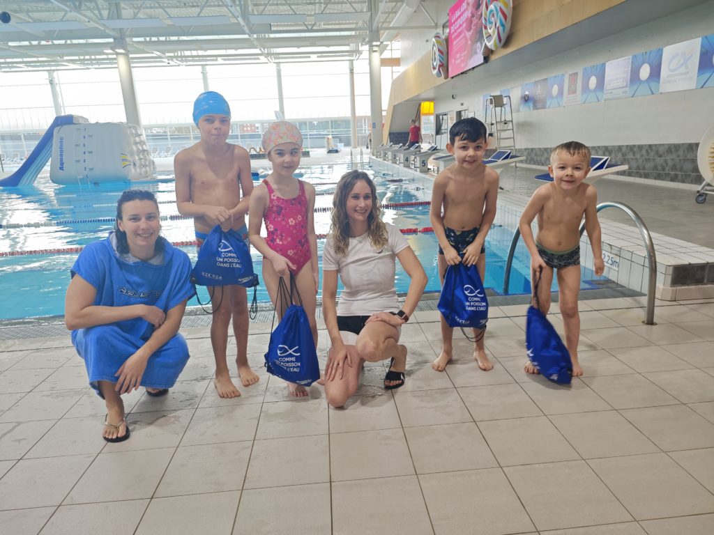 Les 7 enfants ont reçu une belle dotation dès ce premier cours remis par la Nageuse professionnelle Cyrielle Duhamel !